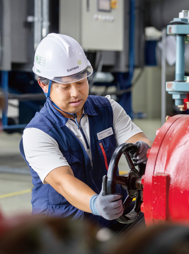 이 현장은 전기를 지역 열병합발전소에서 공급받는데, 저희 쪽에서 조정할 수 없기 때문에 초기 메뉴화·세팅에 시간이 좀 걸렸어요. 냉동기 가동 이후 소모되는 열량까지 충족시켜 세밀하게 세팅해 냉방효율은 올리고 비용은 절감해 나가고 있습니다. 또, 삼구가 시설 관리를 맡으면서 저도 오픈 멤버로 함께했는데요. 부족했던 초기 시스템을 머리 맞대고 개선해 왔는데, 지금은 타 지점에서 견학 와서 배워갈 정도로 우수사례가 됐습니다. ‘우리가 정말 잘해왔구나!’라는 자부심이 듭니다.