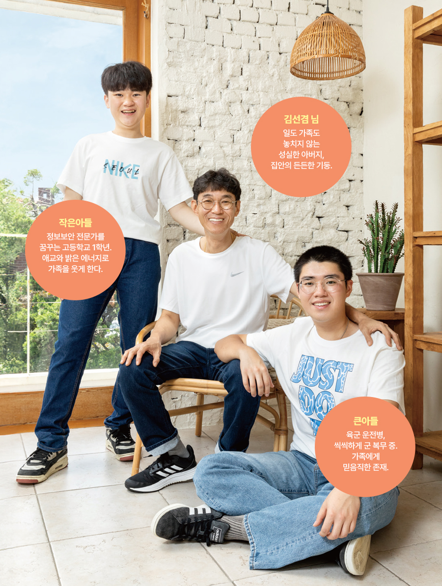 관심을 기울이는 화목함이 느껴진다. 각자의 자리에서 꿈을 향해 나아가는 두 아들의 모습은 김선겸 씨에게 더없는 보람과 행복이다. 이 가족의 가장 큰 힘은 바로 서로를 향한 굳건한 신뢰에서 비롯된다.