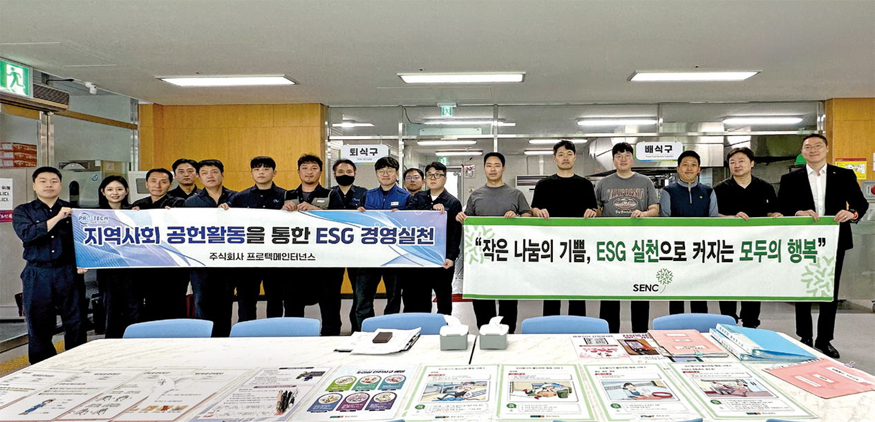 ㈜에스이엔씨와 ㈜프로텍메인터넌스가 지역사회를 위해 합동 봉사활동을 실시했다. 양 법인 임직원들은 9월 3일 울산광역시 제2시립노인복지관에서 조리·배식 및 식기 세척 등 봉사활동을 실천했다. 이날 임직원들은 위생과 안전을 위해 복장을 갖추고, 급식소를 찾은 이들에게 직접 음식을 배식하며 따뜻한 마음을 전했다. 프로텍메인터넌스 이기병 본부장은 “오늘 봉사활동에 함께한 구성원들의 정성이 잘 전달됐길 바란다”라며, “앞으로도 지역사회 상생과 취약계층 지원을 위한 사회공헌활동을 이어가겠다”라고 밝혔다.