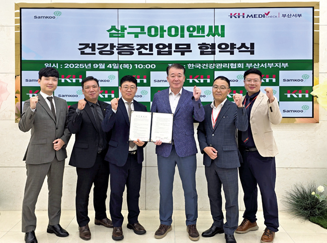 ㈜삼구아이앤씨와 한국건강관리협회 부산서부지부(이하 건협부산서부)가 9월 4일 건강 증진을 위한 업무 협약을 체결했다. 건협부산서부는 이번 협약을 통해 삼구아이앤씨의 구성원 및 직계 가족에게 기본 건강 검진뿐만 아니라 다양한 맞춤형 건강 관리 프로그램을 제공할 계획이라고 밝혔다. 건협부산서부 최창근 본부장은 “협약을 통해 더 많은 분들이 건강 검진의 중요성을 인지하고 건강을 지키는 계기가 되기를 바란다”라고 말했다. 유용국 본부장은 “건강 복지 향상을 위한 협약 기회를 마련해준 건협부산서부에 감사드리며, 구성원들이 전문적인 검진을 통해 체계적 건강 관리를 지속하길 기대한다”라고 말했다.